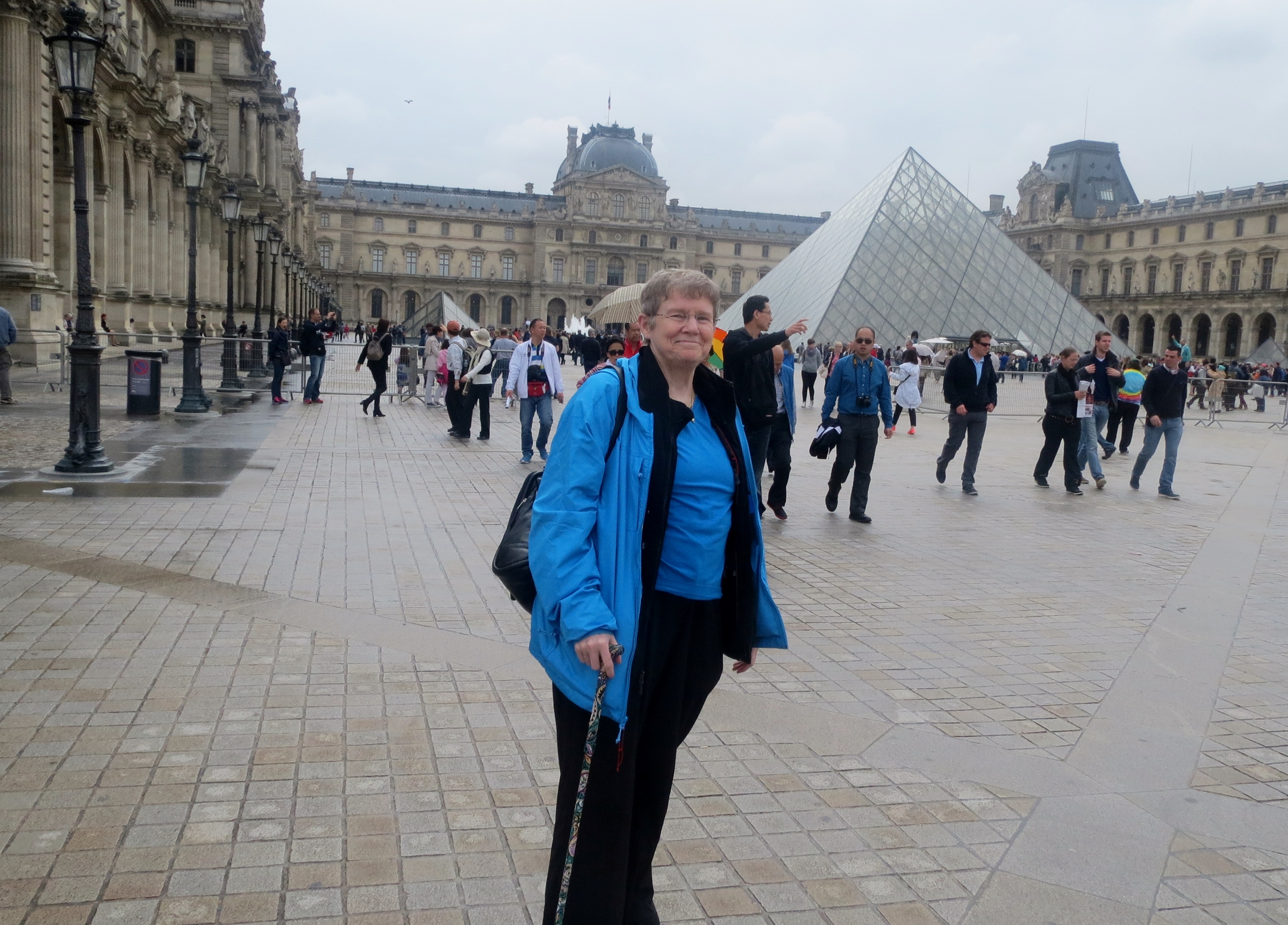 As we were watching the people passing outside the café, it occurred to me that Paris has become a bit like Disney World. The tour buses pass by incessantly. And the pedestrians are mostly composed of groups of 30 to 60 tourists being led around by a guide holding aloft some agreed upon item – a huge artificial flower, a brightly colored umbrella, or perhaps a sign of some sort, or a flag. They don’t dare get separated, so the group members huddle together and move en masse. It’s always possible to tell a group –in addition to the swiftly moving leader, all their members have something in common that makes them stand out from the French public — youth, nationality, language, ethnic appearance, type of clothing – and there are all kinds of groups. I’m glad that on this trip we’ve mostly been able to keep a distance from the most crowded tourist haunts, although even so, the human environment on the streets and in the cafes is multi-ethnic and polyglot. Only the bus riders are fairly consistently French.