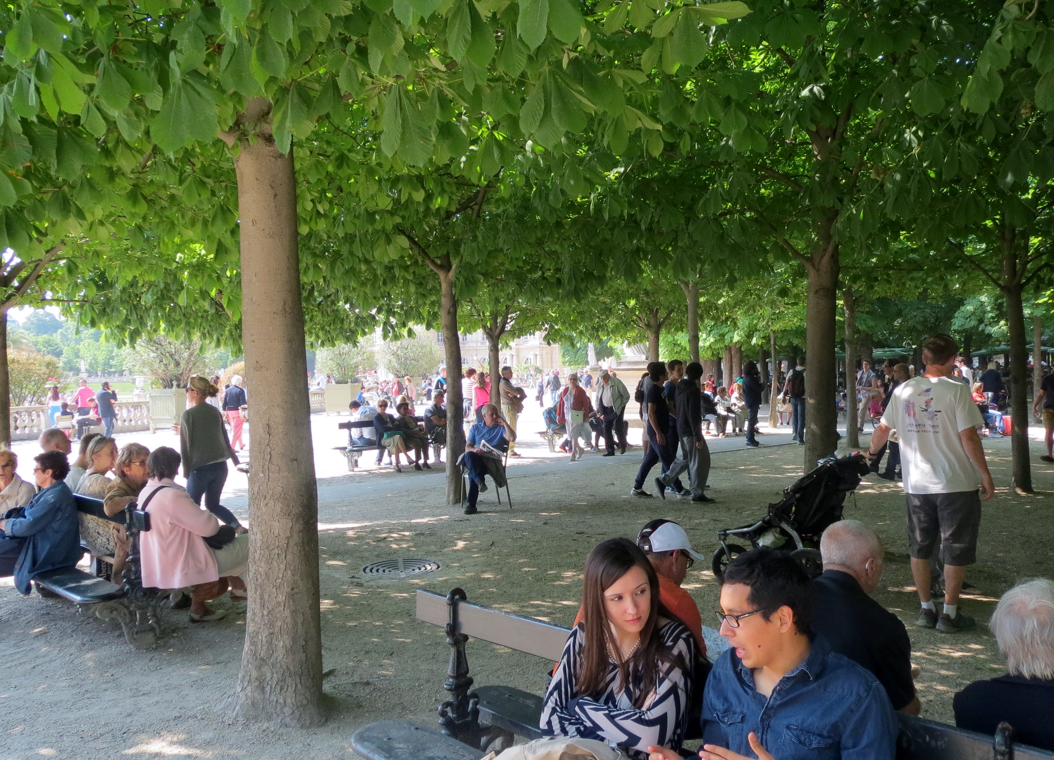 We had decided to enjoy the Luxembourg Garden and visit the Luxembourg Museum with its special exhibit marking the 200th anniversary of the death of Josephine Bonaparte in 1814. I had known that Josephine was the wife of Napoleon. But I had never learned much about her – she existed only in his shadow in my mind. I found it fascinating to learn a bit about her in her own right. Like Napoleon, Josephine had been from the margins of French moneyed society – he from the island of Corsica, in the Mediterranean – French territory but Italian ethnicity, and she from a sugar plantation on the French Caribbean island of Martinique. Like Napoleon, Josephine had been a shrewd and successful promoter of her own success, both in marrying into wealth and power twice (Napolen was her second husband, after her first was executed at the Guillotine during the French Revolution), and in maintaining herself between marriages in the center of noble society of her time. Although they were married for only five years, Napoleon and Josephine were truly in love with each other, from the time they met until their deaths several years after he had their marriage annulled so that he could marry a younger woman with the hope of fathering a male heir. In addition, after returning to single life after her marriage with Napoleon, she successfully mentored her two children by her first marriage so that they and their children married well into royal and powerful families, so that her descendants found themselves in the palaces of several European countries, and she kept a good relationship with both her children and her grandchildren. And she advanced the cause of science by fostering exploration of the first deliberate hybridizing of roses, resulting in roses becoming popular garden plants. Napoleon had given her the name “Josephine.” Her birth name was Marie Rose, and her family of origin knew her as “Rose.” She loved roses because they invoked her beloved name.