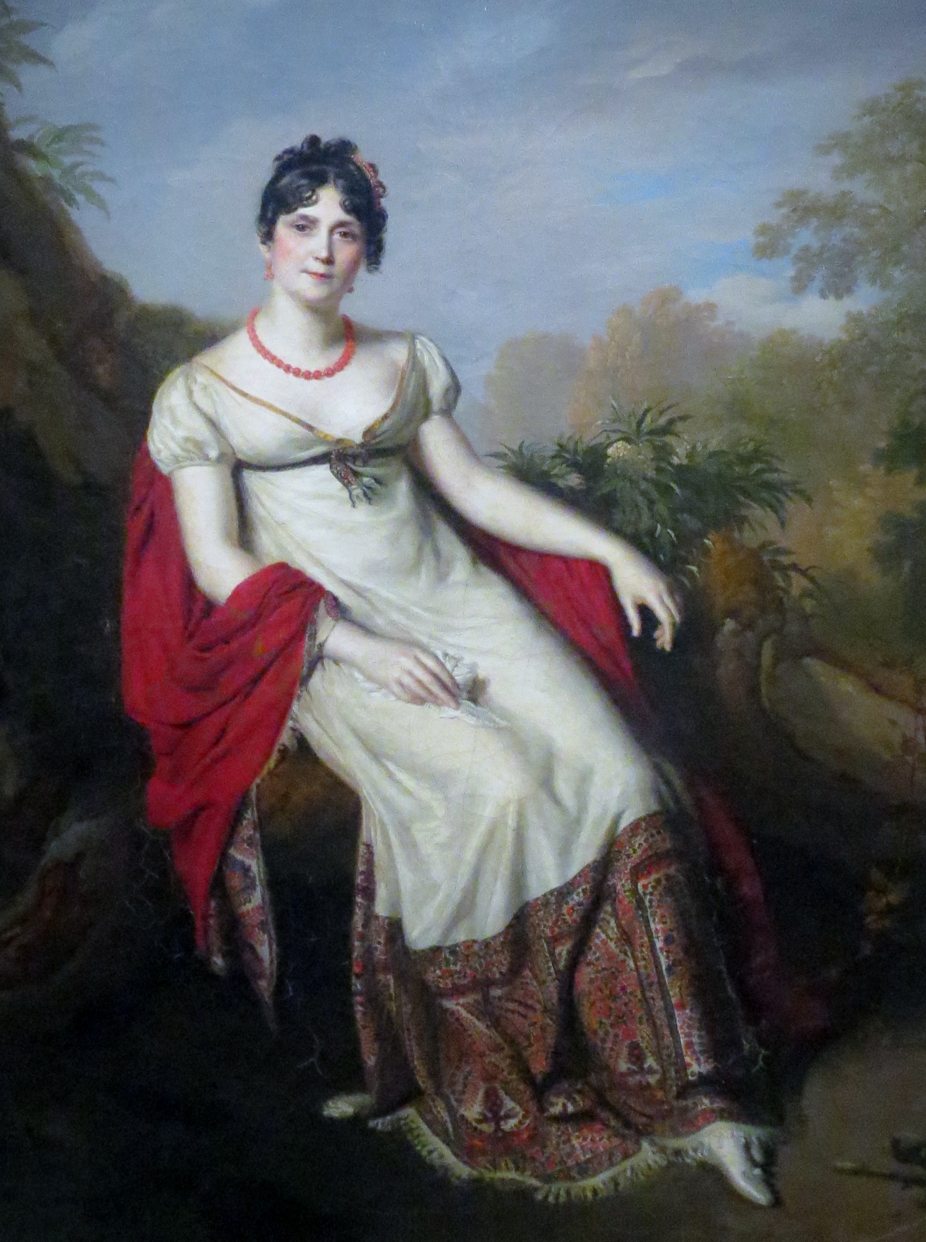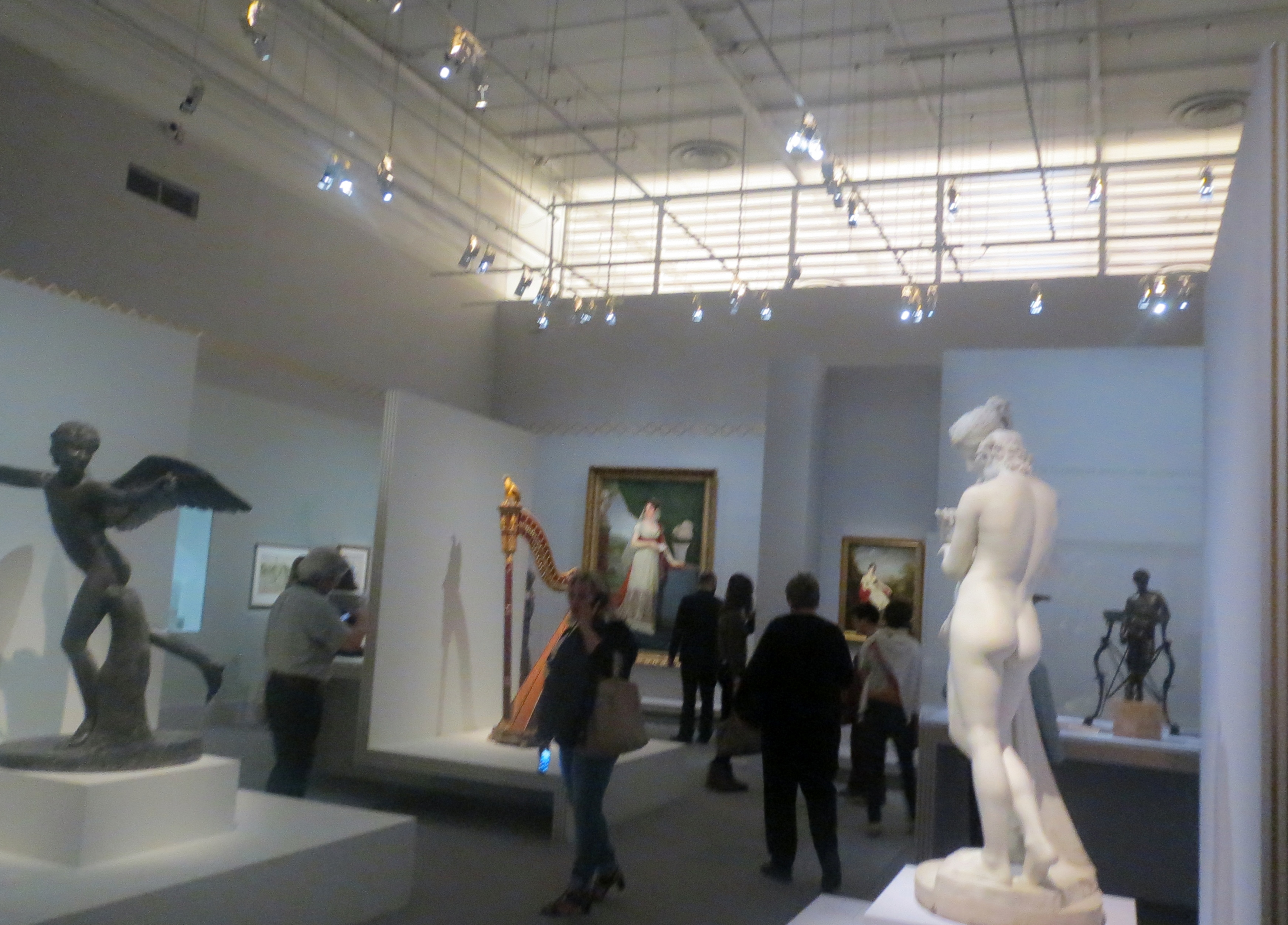 The exhibit did an excellent job of portraying Josephine and her life through artifacts, paintings, and clothing. It was organized chronologically, from her girlhood in Martinique through her first marriage to a Parisian military man of noble parentage, her widowhood and imprisonment during the French revolution, her early days with Napoleon, leading up to her coronation by him as Empress of France and Italy. It then followed through in depicting her years as Empress, and finally, her years in her own home of Malmaison outside Paris, again single, till she died of pneumonia in 1814. In contrast to the earlier French queens, she was generally regarded with appreciation. People found her kind and gentle, in addition to enjoying her lively beauty.